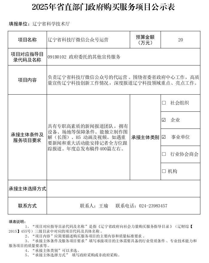 2025年省直部门政府购买服务项目公示表(辽宁澳门赌博平台微信公众号运营)